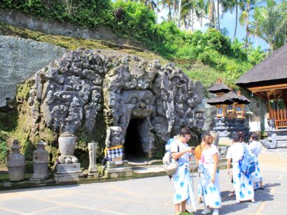 象が大きく口を開けたような洞窟の入口は、ゴア・ガジャ遺跡が「象の洞窟」と呼ばれる所以を感じさせる特徴的な造りである。芸術の村ウブドを象徴するような石彫文化が色濃く残っており、多くの観光客に人気のフォトスポットとなっている。