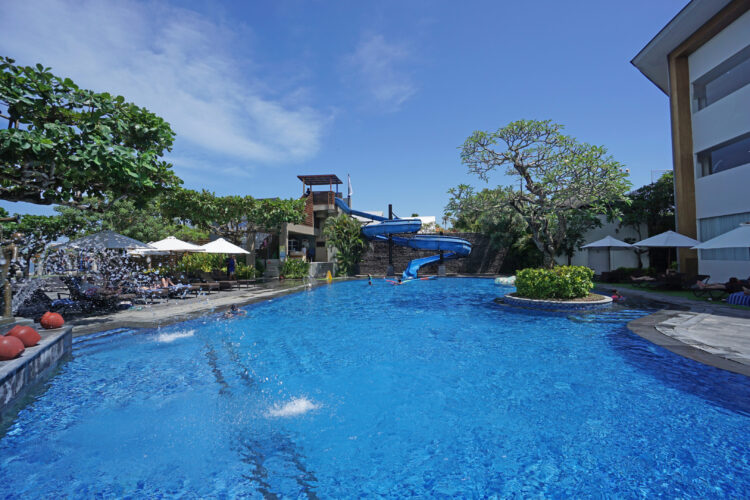 ファミリー棟に位置する家族向けのファミリープール。ウォータースライダーが併設され、お子様もお楽しみいただける施設です。大人用プールの水深は120cm、子供用ミニウォーターパークの水深は43cmです。