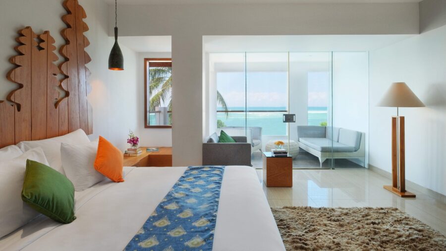 各ウイングの先端、海に最も近い場所に位置するのが「オーシャン フロント スイート」。白砂のビーチとコバルトブルーの海が織りなす、遮るもののない美しい景色を存分に楽しめるお部屋です。