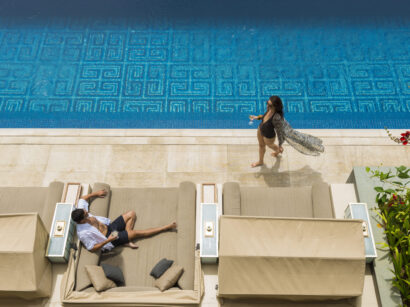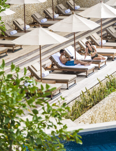 スンダラの隣には、ジンバラン湾を一望できるビーチサイドのデイベッドが並び、日光浴を心ゆくまでお楽しみいただけます。