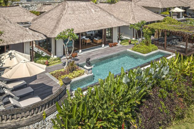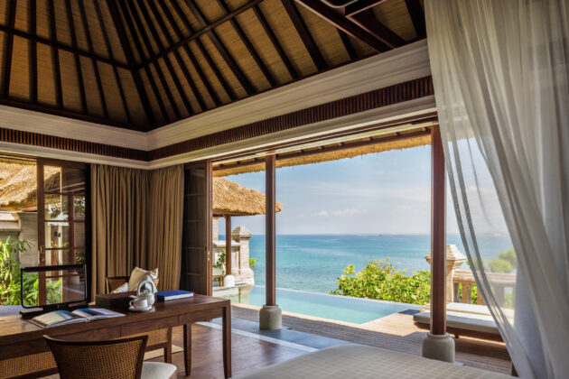 雛壇状に並ぶ最前列のヴィラからは、壮大なジンバラン湾のオーシャンビューが一望でき、広々とした空間で贅沢な滞在を満喫できます。