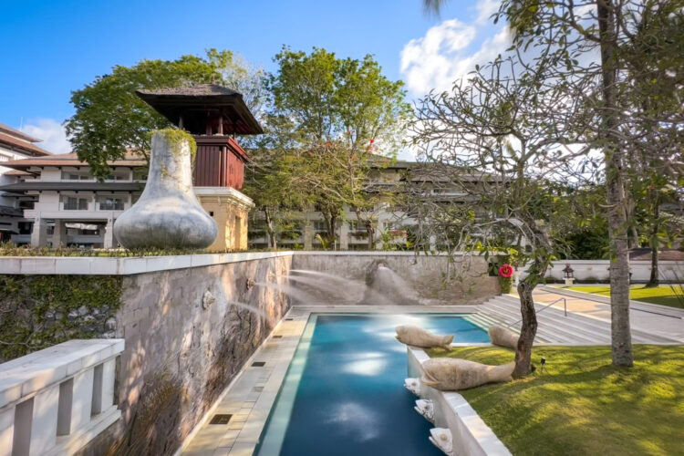 バリニーズ バス プール(Balinese Bath Pool) バリの伝統的な水宮殿をイメージした浅めのプール。子どもから大人まで、庭園の静寂と水の遊び心を家族で楽しめます。水深:120cm 詳細を表示