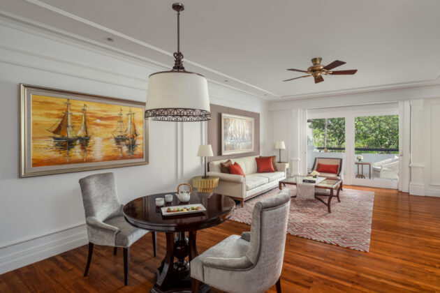 シガラジャウィングに位置するクラシカルな客室。バリやジャワの装飾と重厚な木のフローリング、大理石バスルームが上質な雰囲気を演出。バルコニーからはガーデンやラグーンプールを望め、専用スペースでの特典で優雅な滞在が楽しめます。