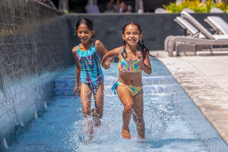 ファミリーでも安心して過ごせる、浅めに設計されたキッズプール。インフィニティープールに隣接しながらも、水深を抑えた造りで小さなお子様でも遊びやすい環境が整っています。親は大人用プールで景色を楽しみながら、すぐそばで子どもを見守れる絶妙な距離感も魅力。