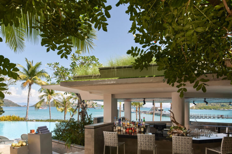 インフィニティープールに隣接するプールバー。水面の向こうに広がる海を眺めながら、ドリンクや軽食を気軽に楽しめます。泳いだ後にそのまま立ち寄れる距離感も心地よく、日差しの下でもリラックスした時間が流れます。肩の力を抜いて過ごせる、リゾートらしいひとときを演出してくれる存在です。