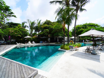 ビーチフロントに広がる開放的なロケーション。プールからそのままビーチへと続き、クタにいながら本格的なオンザビーチステイを楽しめます。