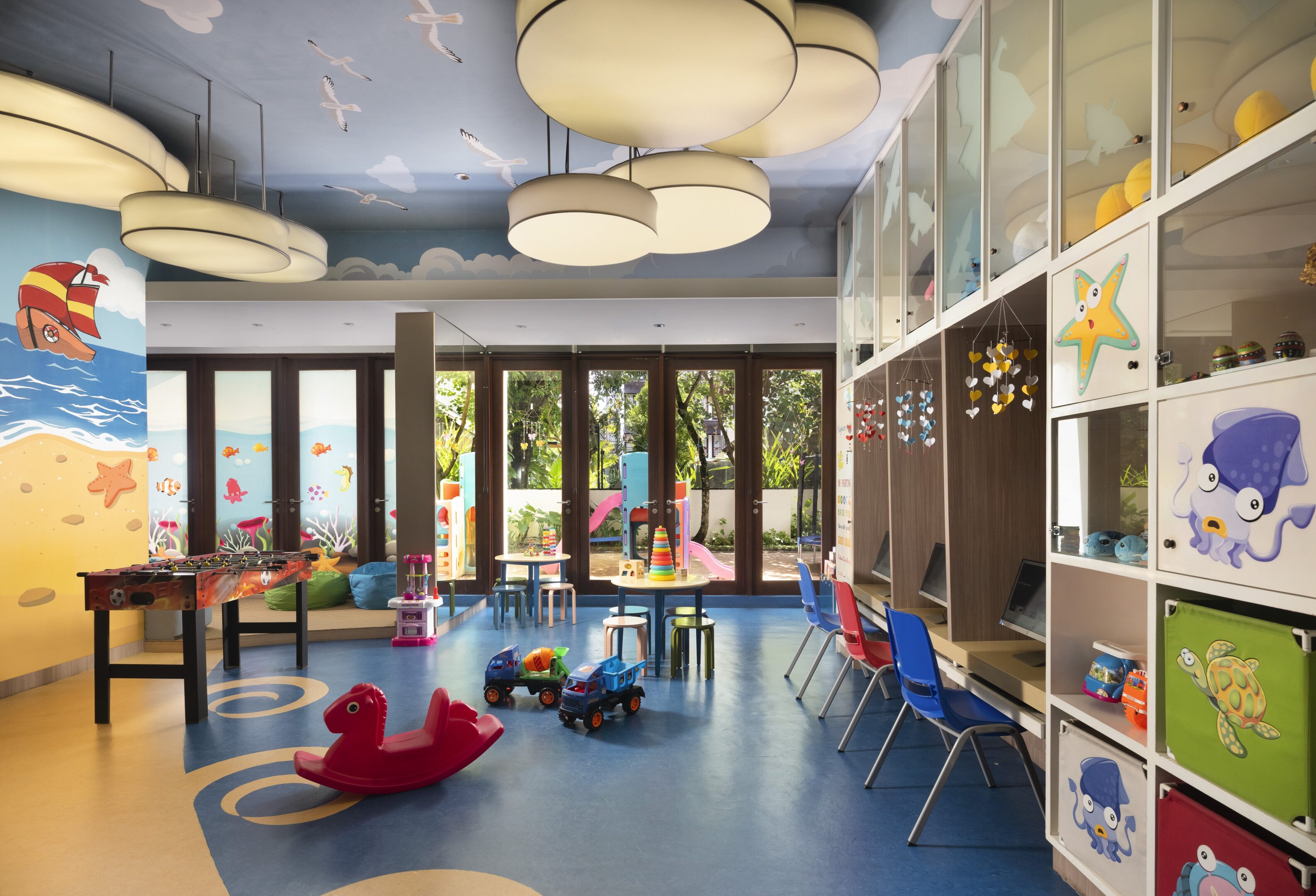 屋内キッズクラブに加え、屋外には滑り台などの遊具を備えたプレイエリアも併設。天候や気分に合わせて過ごせるのが魅力です。クラフトやゲームなどのアクティビティも用意されており、ファミリー滞在をサポートしてくれる施設です。