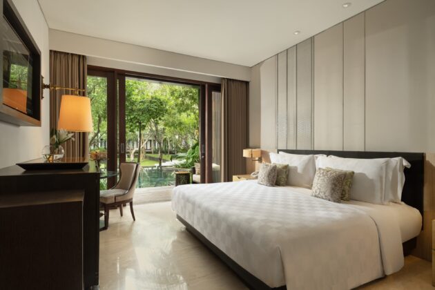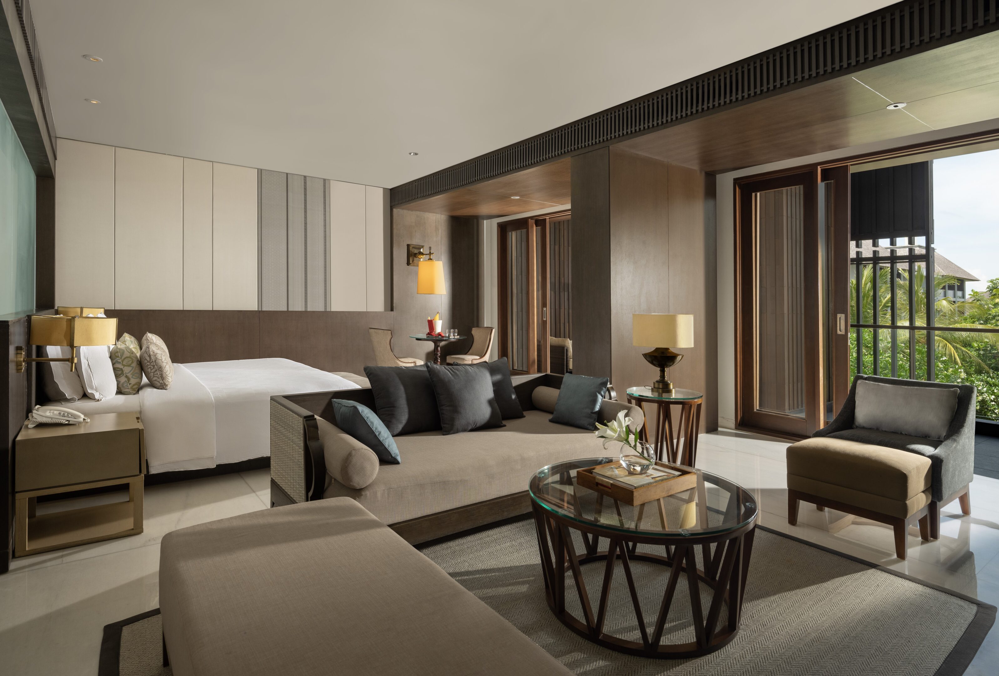 モダンな空間にバリのエッセンスをさりげなく添えたスタンダードルーム。落ち着いたインテリアが心地よく、リゾートステイの拠点にふさわしい一室です。全室ツインベッド仕様(ハリウッドツイン対応)で、朝食はクニット レストランにて。 詳細を表示