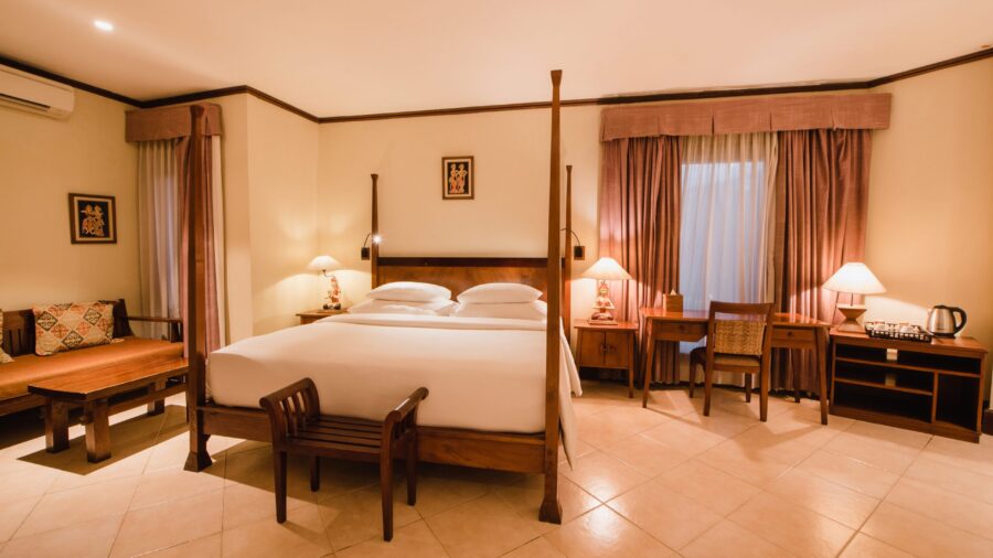 キングベッドまわりの一角