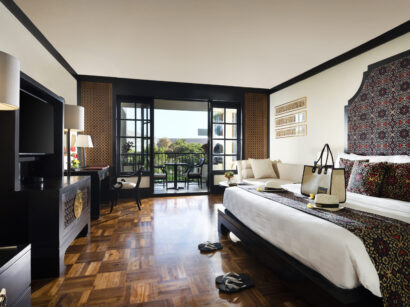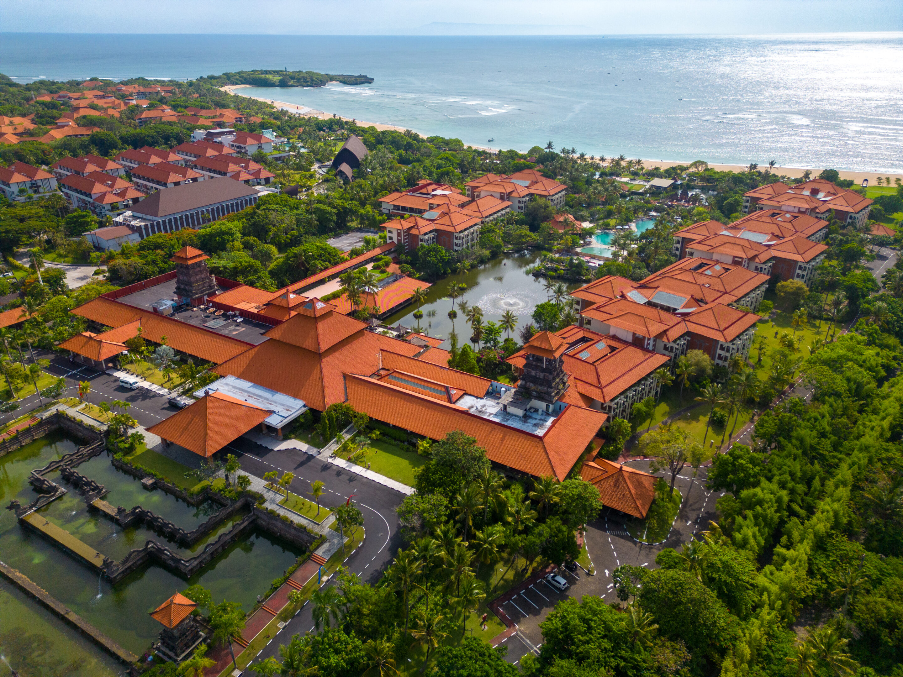 ヌサドゥアビーチ沿い約11.5ヘクタールに広がるアヨディア リゾート バリは、ヒンズー教神話に登場するラマ王とシンタ王妃が暮らした宮殿「アヨディア」にちなんで名付けられた壮麗なビーチフロントリゾートで、“水の宮殿”をテーマにした石像や噴水、ラグーンプールが敷地内に点在し、バリ島の水景とドラマチックな景観が印象的です。伝統的なバリ建築と開放感あふれるランドスケープが融合し、300メートルの白砂のプライベートビーチや複数のプール、インフィニティプールなどが揃い、静かな海辺の時間を楽しめます。敷地内にはスパや複数のレストラン、カフェ、遊歩道も整っており、滞在中は多彩なダイニングやウェルネス体験ができます。また、ショッピングやレストランが集まるバリコレクションへ徒歩圏内という立地も魅力で、リゾートの静けさとヌサドゥアエリア随一の利便性を両立した滞在が叶います。客室は庭園やラグーン、海を望むバルコニー付きで、伝統的なバリ装飾と快適なモダン設備を備えています。さらに、家族連れにも嬉しいキッズクラブやアクティビティが充実し、カップルからファミリーまで多様な旅のスタイルに対応しています。