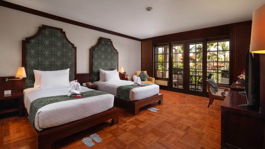 アヨディアパレスは、リゾート内で専用エリアとして区分けされた特別カテゴリー。棟内にありながらも、ワンランク上の設えと落ち着いた雰囲気が、まるで“リゾートの中のもう一つのリゾート”のような特別感を演出します。室内は上質感あふれるインテリアでまとめられ、専用ラウンジや専用プールの利用、バトラーサービスなど、パレスゲスト限定の特典をご用意。よりプライベート感のある、優雅なリゾートステイをお楽しみいただけます。