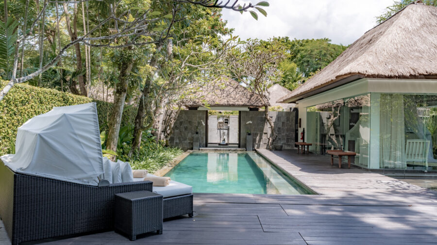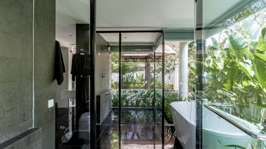 ガラス張りの斬新なデザインのヴィラ