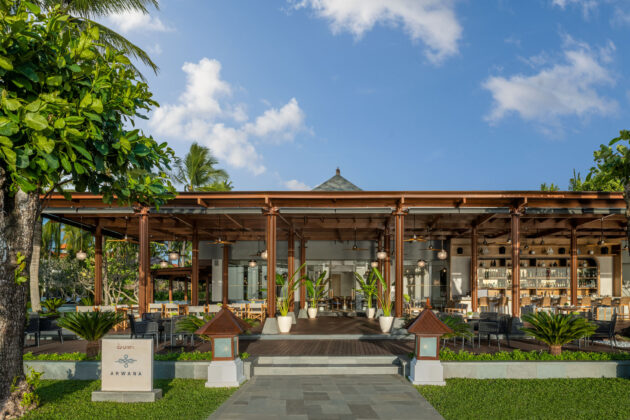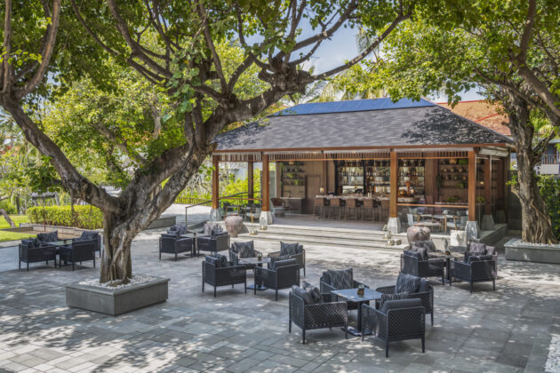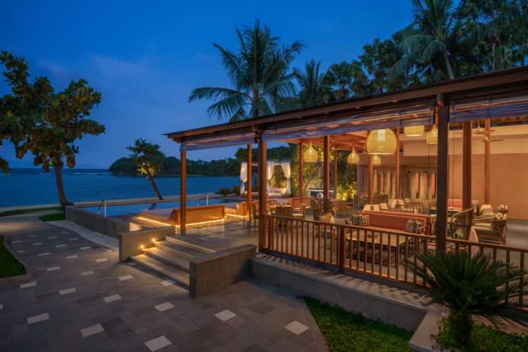 ビーチ沿いに設けられたカジュアルなビーチハウススタイルのダイニング。ドリンクや軽食を楽しみながら、海を眺めてゆったりと過ごせる開放的な空間です。