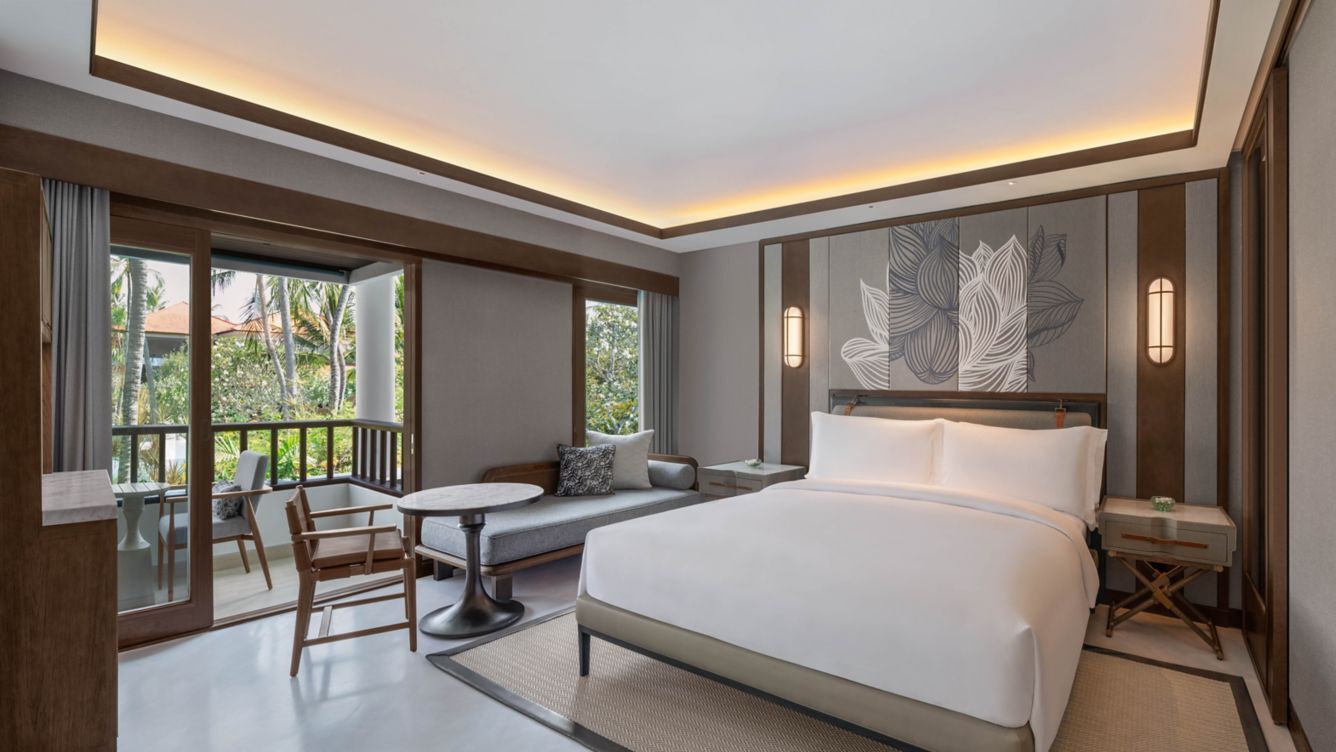 シックなデザインにバリのエッセンスが映える客室