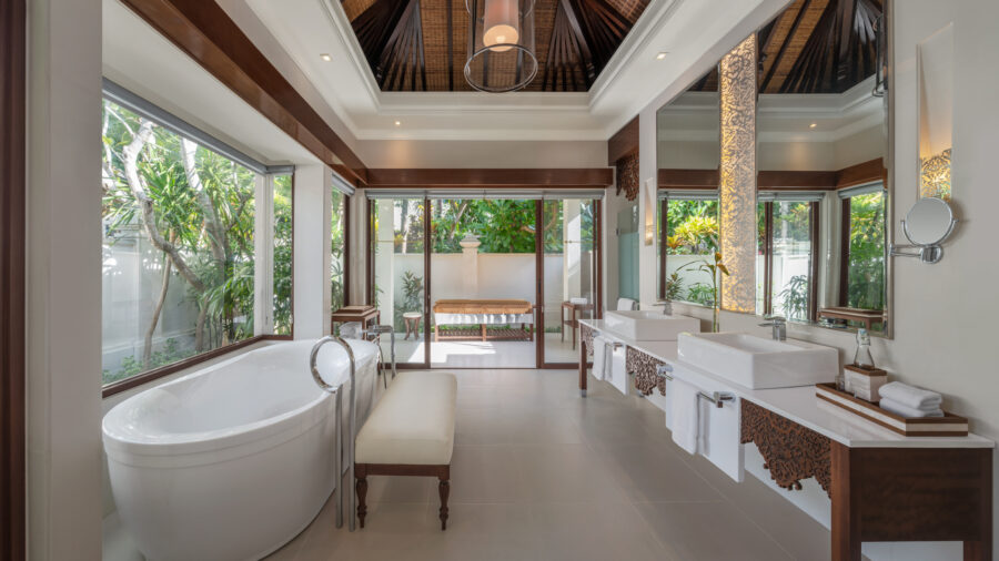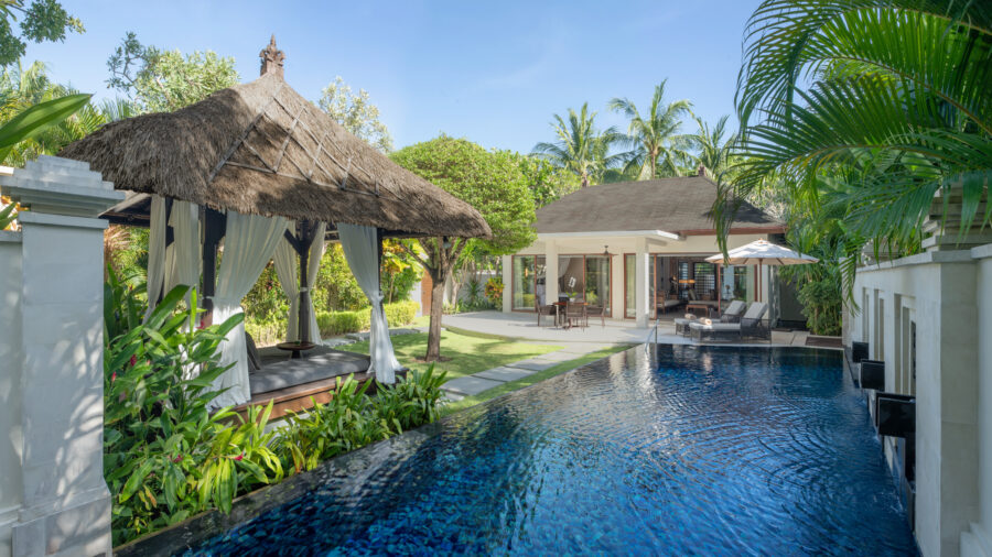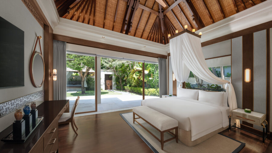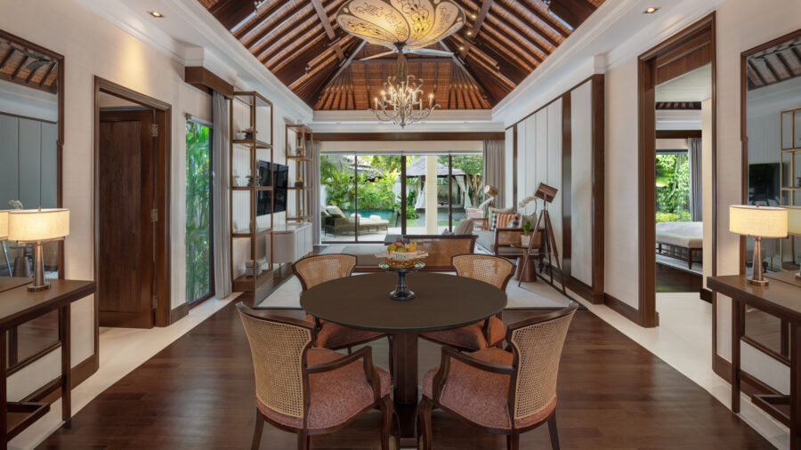 プールとガーデン、ゆとりあるリビングが一体となった設計は、同系列の名門「セントレジス バリ リゾート」を思わせる落ち着いた空気感。それでいて過度な格式に寄らず、肩の力を抜いて滞在できるのが魅力です。