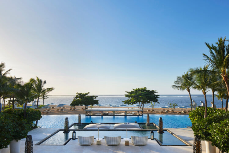 ゲゲールビーチに面した、リゾートを象徴するオーシャンフロントプール。視界いっぱいに広がる海を眺めながら、リゾートならではのスケールと開放感を味わえます。
