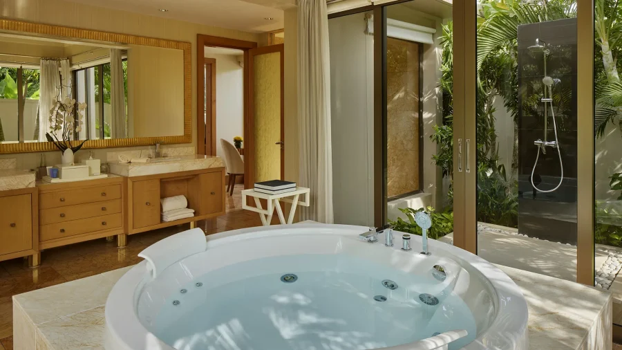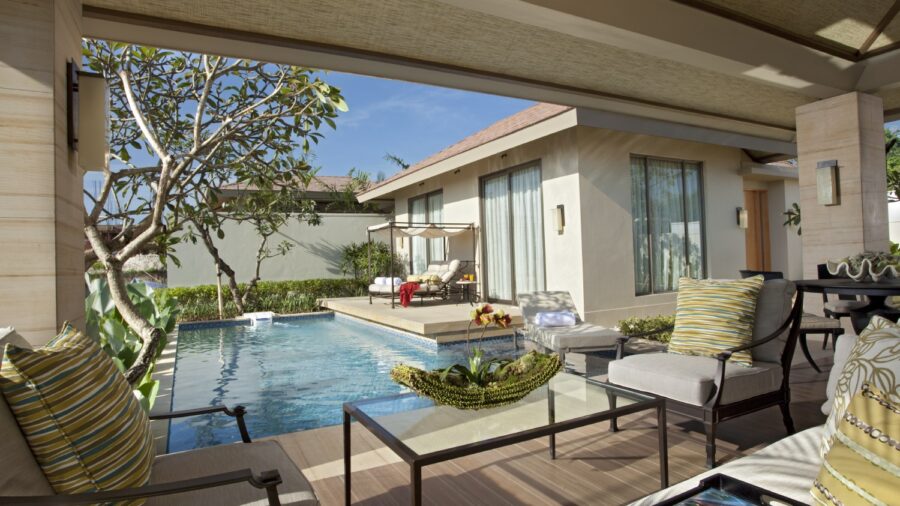 ムリア リゾートの高台エリアに段々に広がるオーシャンビューヴィラ。明るくエレガントな室内とオープンエアースペースが生み出す開放感に加え、遠くにビーチを望む眺望が、リゾートらしい特別な時間を演出します。ハイドロテラピープールを完備し、プライバシーを大切にしながら、景色とともにくつろぐ上質なヴィラ滞在が叶います。(※全室禁煙)
