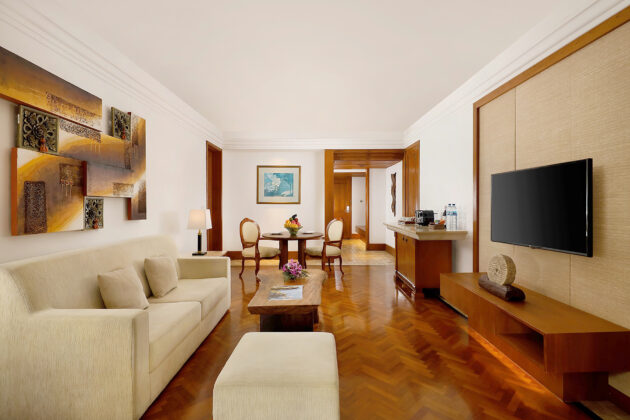 独立したリビングルームを備えた、ラグジュアリーな滞在を叶えるスイートルーム。