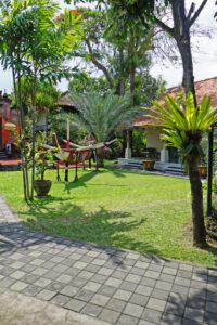 こじんまりとした雰囲気のホテル内ガーデンは、南国の木々と伝統建築が融合した、バリらしい雰囲気に包まれています。