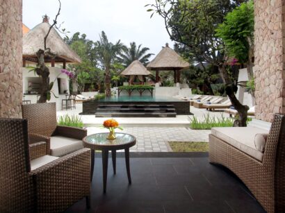 こじんまりとした雰囲気のホテル内ガーデンは、南国の木々と伝統建築が融合した、バリらしい雰囲気に包まれています。