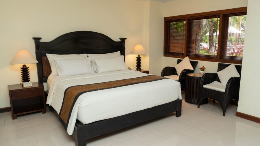 ガーデンウイングの客室棟は、ガーデンプールを囲むように配置されています