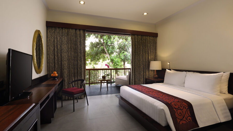 クラシカルな趣を残しつつ、インテリアを一新したデラックスルームは、グリヤ サントリアンを代表する客室タイプ。リゾート内に点在する客室棟は2階建てまたは3階建てで構成され、一部にはエレベーターを備え、どなたにも快適な滞在を叶えます。全87室を誇る最多客室タイプで、機能的なシャワーブースのみの設えとなり、バスタブはございません。