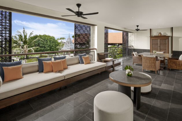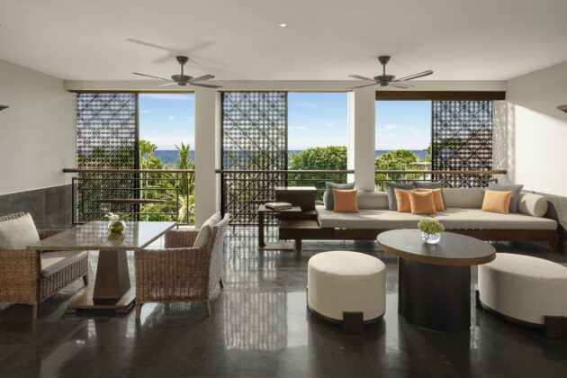 約136㎡のゆとりある1ベッドルームスイート。独立したリビングを備えた贅沢な造りで、庭園越しに穏やかな海を望むオーシャンビュー。広さに加え、海の景色も楽しみたい方におすすめのカテゴリーです。 詳細を表示