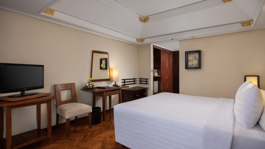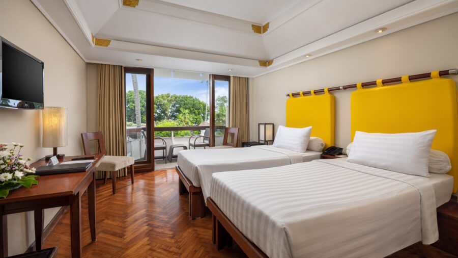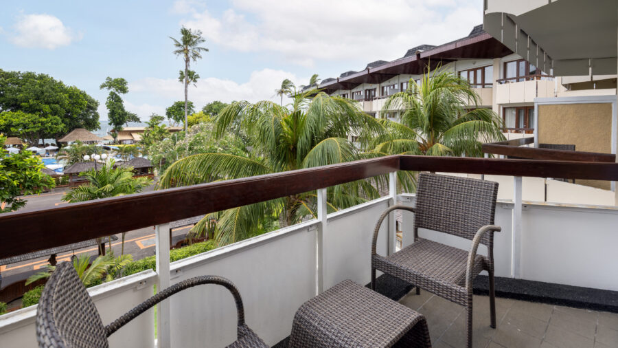 落ち着いた色調でまとめられた、スタンダードタイプの客室。機能的なレイアウトで使い勝手がよく、バルコニーまたはテラスを備えた心地よい空間です。サヌールらしい穏やかな空気を感じながら、気負わず過ごせる滞在を叶えます。