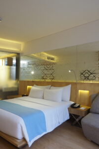アイズ スミニャックは、カユアヤ通りの一角に位置する、2013年創業のスタイリッシュな都市型ホテルです。お洒落なカフェやレストラン、アパレルショップが立ち並ぶスミニャックの中心エリアにあり、街歩きの拠点として抜群のロケーションを誇ります。館内にはレストラン、メインプール、ジムなどの設備が充実。なかでも屋上にあるメインプールと併設のプールバーは、このホテルの大きな魅力のひとつです。スミニャック近郊の市街地を一望できる開放的な景色を楽しみながら、リゾート気分を満喫できます。客室は全81室で、デラックスからスイートまで全5タイプ。いずれもモダンで洗練されたデザインが特徴です。1日5枚まで無料のランドリーサービスが付くクラブルームやジュニアスイートなど、長期滞在にも嬉しい特典を備えた客室も用意されています。スミニャックエリアの散策を目的に3泊以上ゆったり滞在するのはもちろん、到着日や帰国前日の1泊利用など、デイユース感覚での宿泊にもおすすめのホテルです。