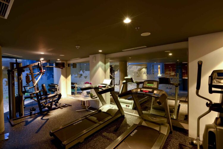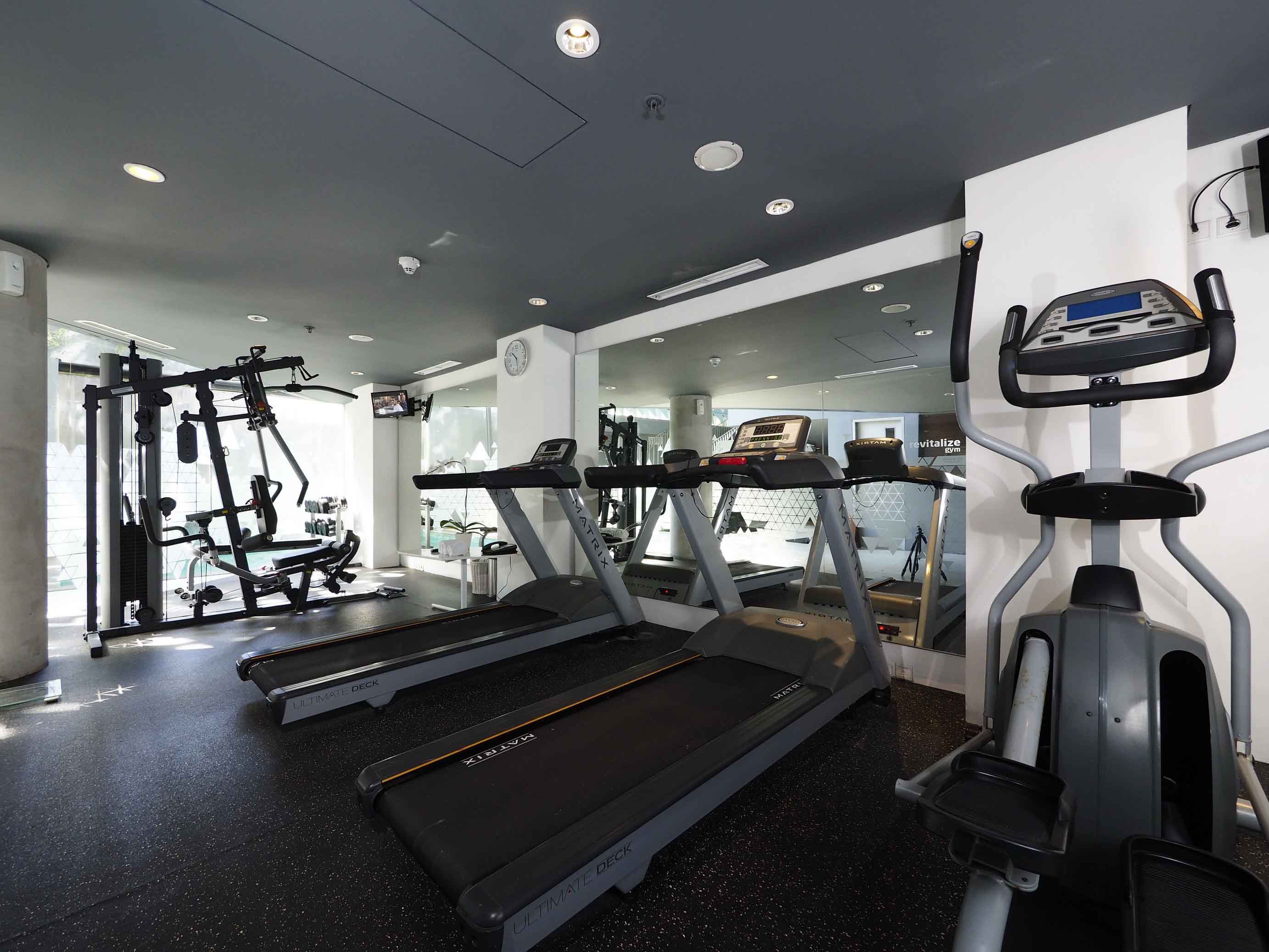 3階に位置するジムは、フリーウェイトやトレッドミル、クロストレーナーなど、基本的な設備が揃います。