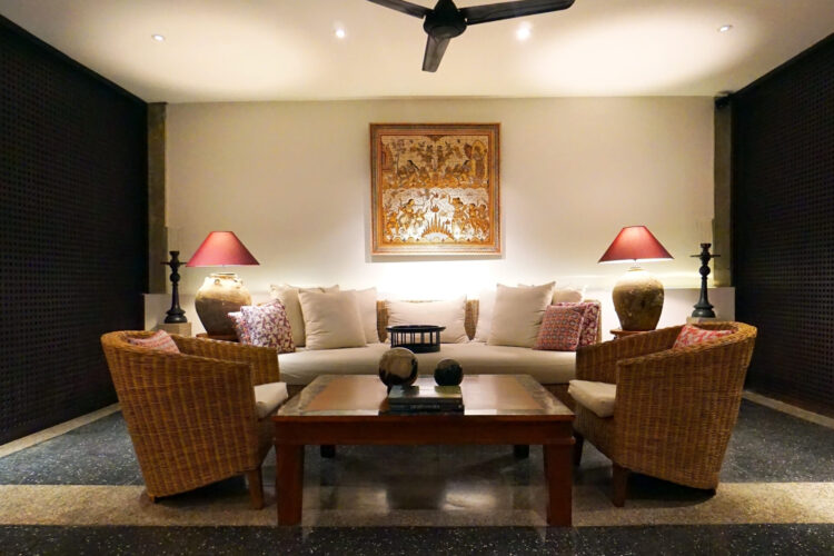 高い天井の開放感と、壁を飾る質の高いインドネシア美術に満たされたロビーラウンジ。多彩なドリンクが揃い、静かな佇まいの中で本を手にすることもできる。ディナーのカクテルや食後のブランデー、シガーを傍らに、海辺の時間をゆるやかに刻む大人のラウンジスペースとなっている。