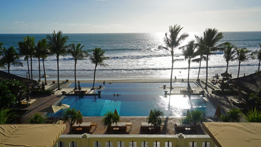 広いリビングスペースでは高級なバリ島家具が並ぶ