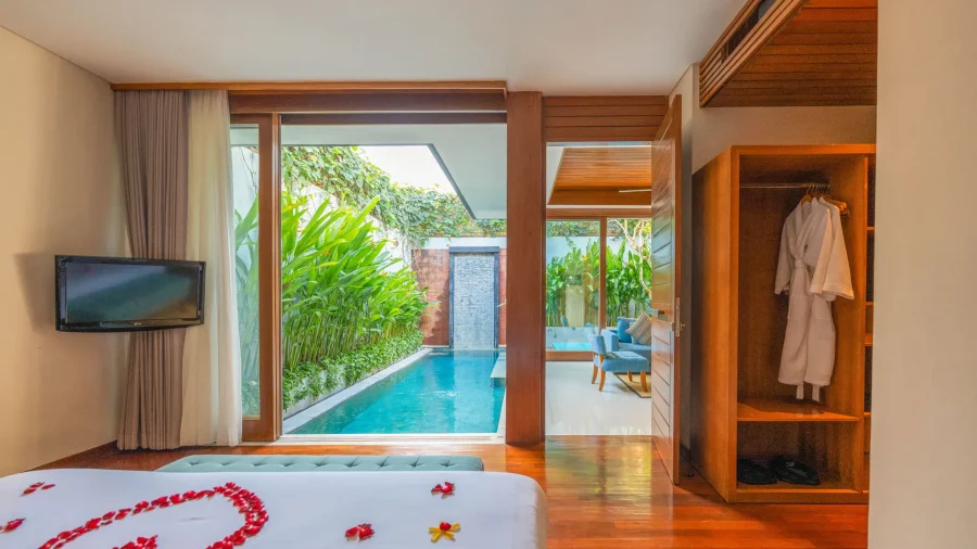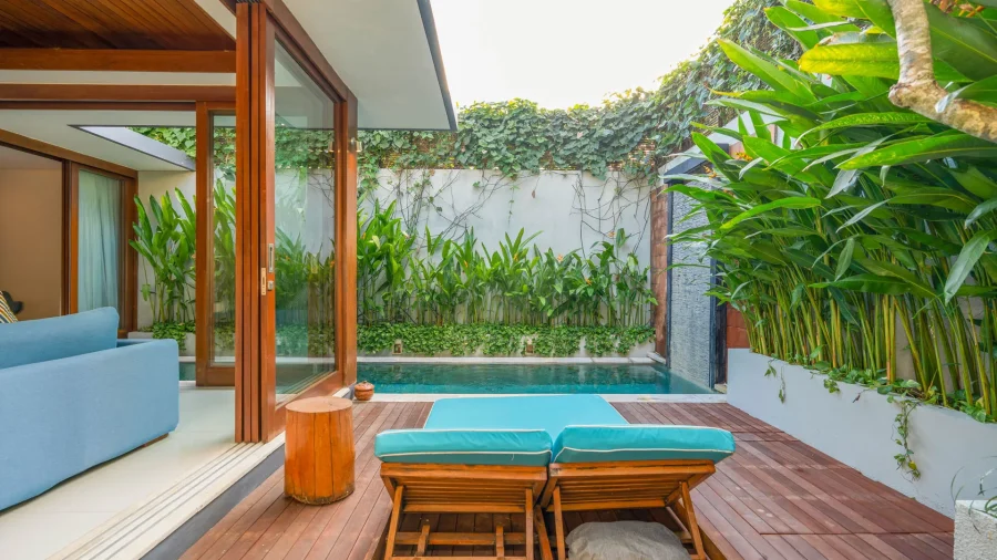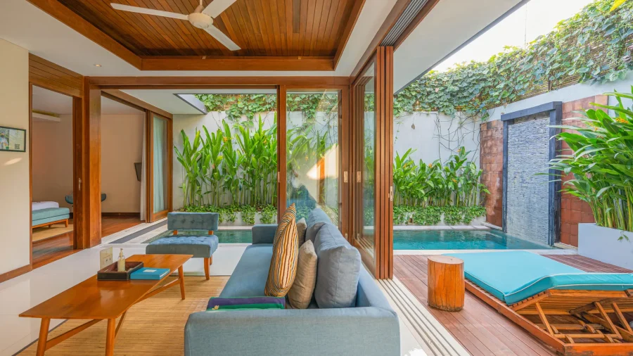 ヴィラの開き戸は開閉可能なのが特徴。