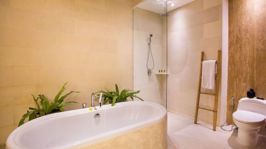 バスタブ付きのバスルーム。