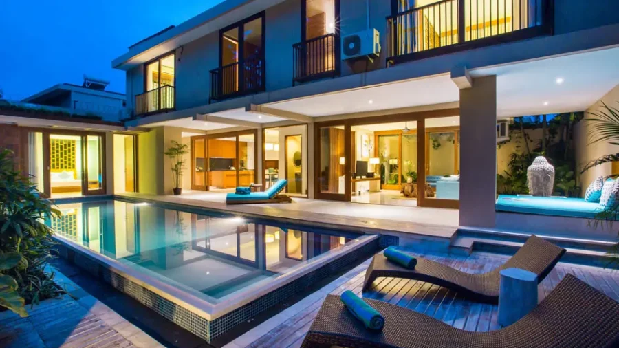 多くのデイベッドが備わったプライベートプール。