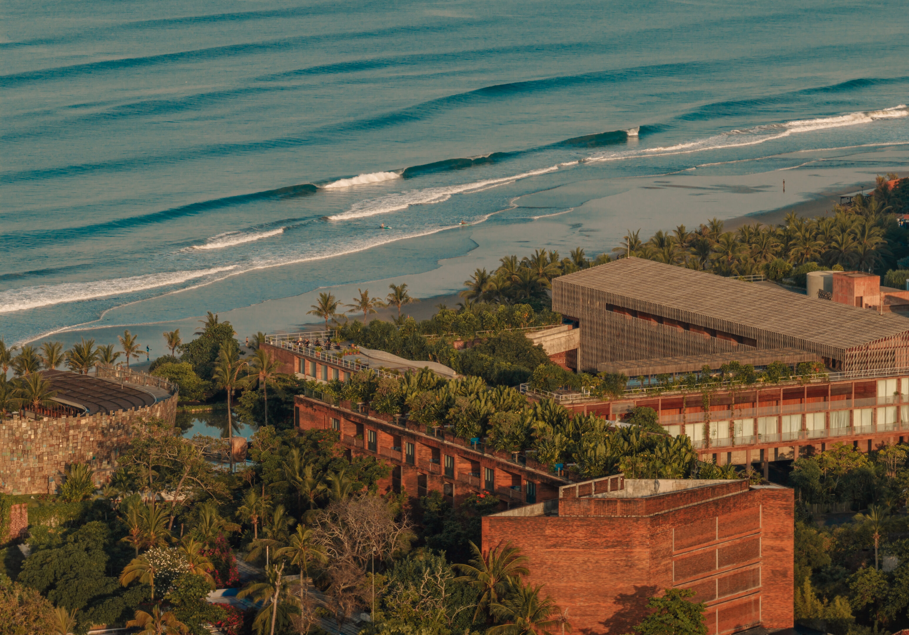 ポテトヘッドは2010年にスミニャックのプティテンゲットビーチに誕生したビーチクラブを起点に発展した、音楽・アート・デザインが交差するクリエイティブヴィレッジです。「Good Times, Do Good」の理念のもと、ビーチクラブを中心にホテルやレストラン、アートスペース、ワークショップなどが点在し、滞在するだけでサステナブルや創造性に触れられる環境が整っています。伝統素材やレンガを活かした涼やかな建築と、防音設備を備えた客室で、静かにくつろぎながらも文化的刺激を感じられるのも魅力です。目の前に広がるインド洋や多彩な施設を体験し、日中は光と風、夜はアジア最高の音質を誇るナイトクラブで音楽に浸る、非日常の滞在を楽しめます。