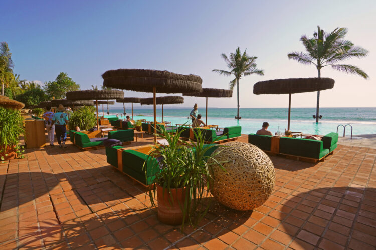 ビーチクラブの中心に位置するビーチフロントのメインプール。目の前にインド洋が広がる開放的なロケーションで、サンベッドや芝生エリアと一体となったリゾートらしい空間です。プールサイドにはレストランやバーが隣接し、食事やドリンクを楽しみながらゆったり過ごせるのも魅力。昼はのんびりとしたビーチタイム、夕方はサンセットスポットとして賑わいます。