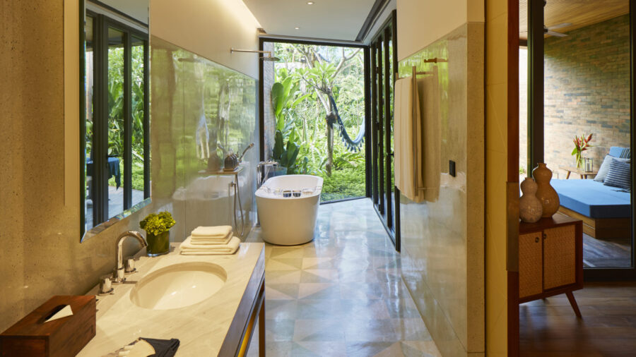 広々としたバスルームにはバスタブを設置