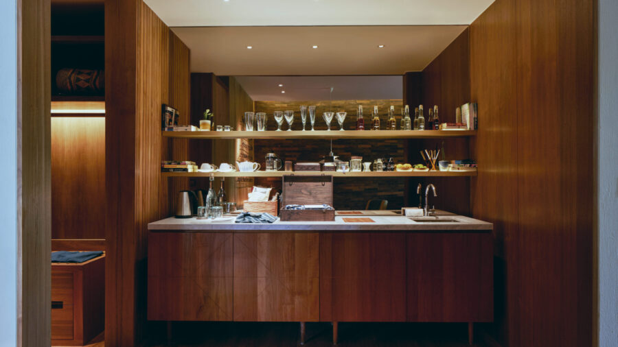 客室内のプライベートバーカウンターで、もう一軒目気分