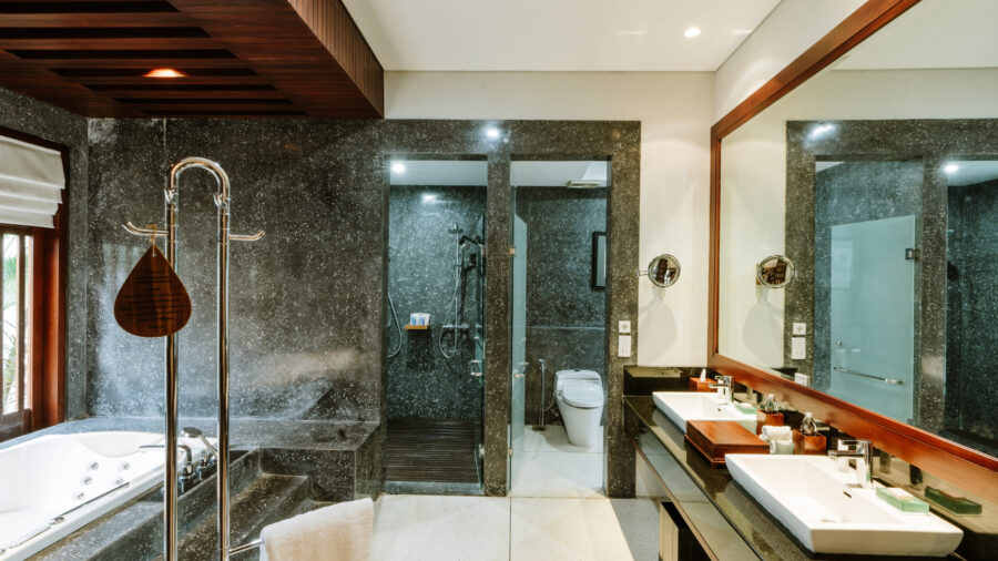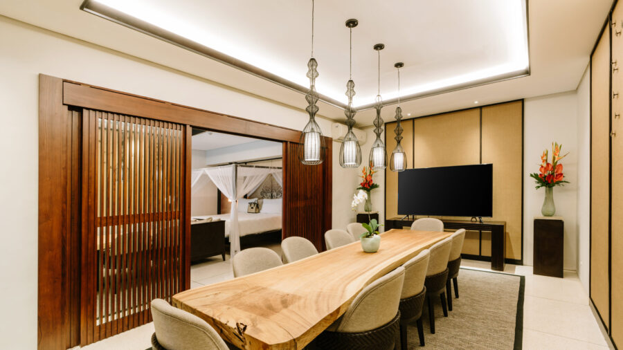 ビーチフロントから少し離れたロイヤルコートヤードエリアに佇むこの邸宅は、約540㎡の広大な敷地を誇ります。穏やかな水面をたたえるプライベートプールを中心に、洗練された1ベッドルームヴィラが3棟、優雅に配置。それぞれのヴィラには、静寂に包まれたベッドルーム、バスタブ付きのバスルーム、そして独立したシャワーブースを完備し、快適さと美しさを兼ね備えています。プライバシーが確保されたレイアウトは、親しい友人やご家族との滞在に理想的。喧騒から離れた静けさの中で、心ほどけるラグジュアリーな時間をお愉しみいただけます。