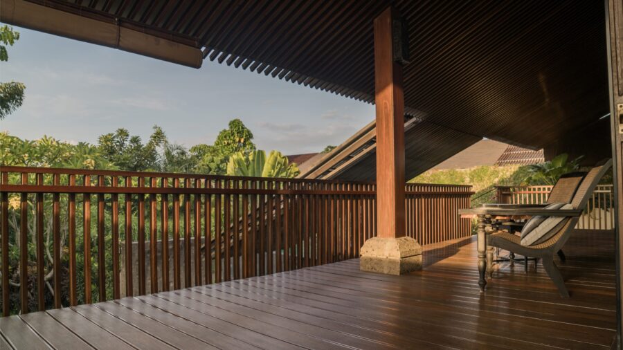 二階のウッドデッキが、心地よい開放感を演出します