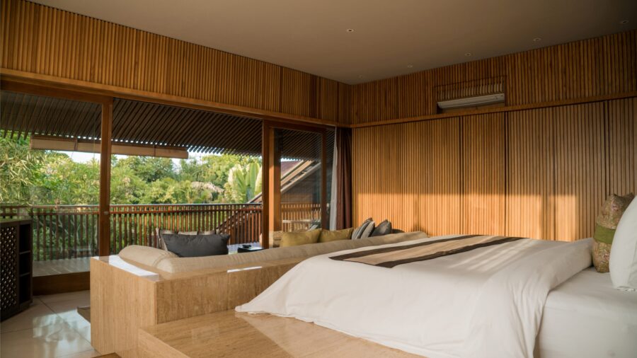木の温もりに包まれたベッドルーム