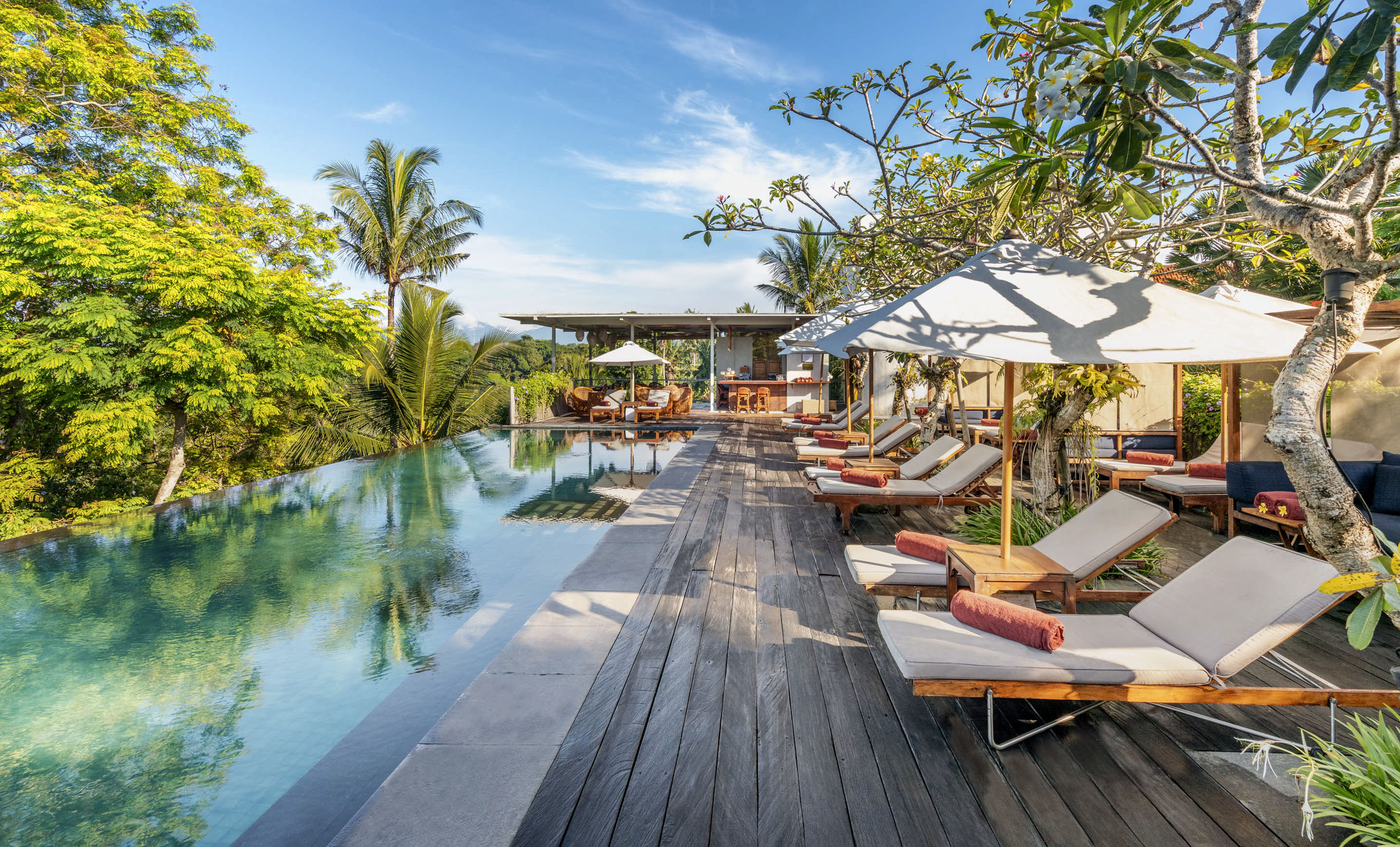 メインプール(Infinity Pool) ウブドの森を望むインフィニティプール。温水仕様で、昼も夜もゆったりと泳げる宿泊者専用のプールです。営業時間:08:00〜19:00水深:140cm 詳細を表示