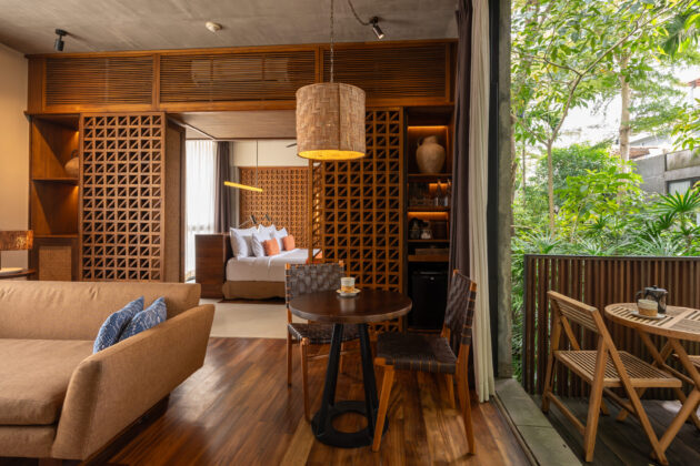 本館から約500m南に位置するヴィラエリアにある客室。2階建ての1ベッドルームプールヴィラで、1階にはプライベートプールとリビングスペース、2階にはベッドルームを配置。開放的なアジアリビングの空間が広がり、まるでウブドの邸宅に滞在しているかのような落ち着いたヴィラステイを愉しめます。 詳細を表示