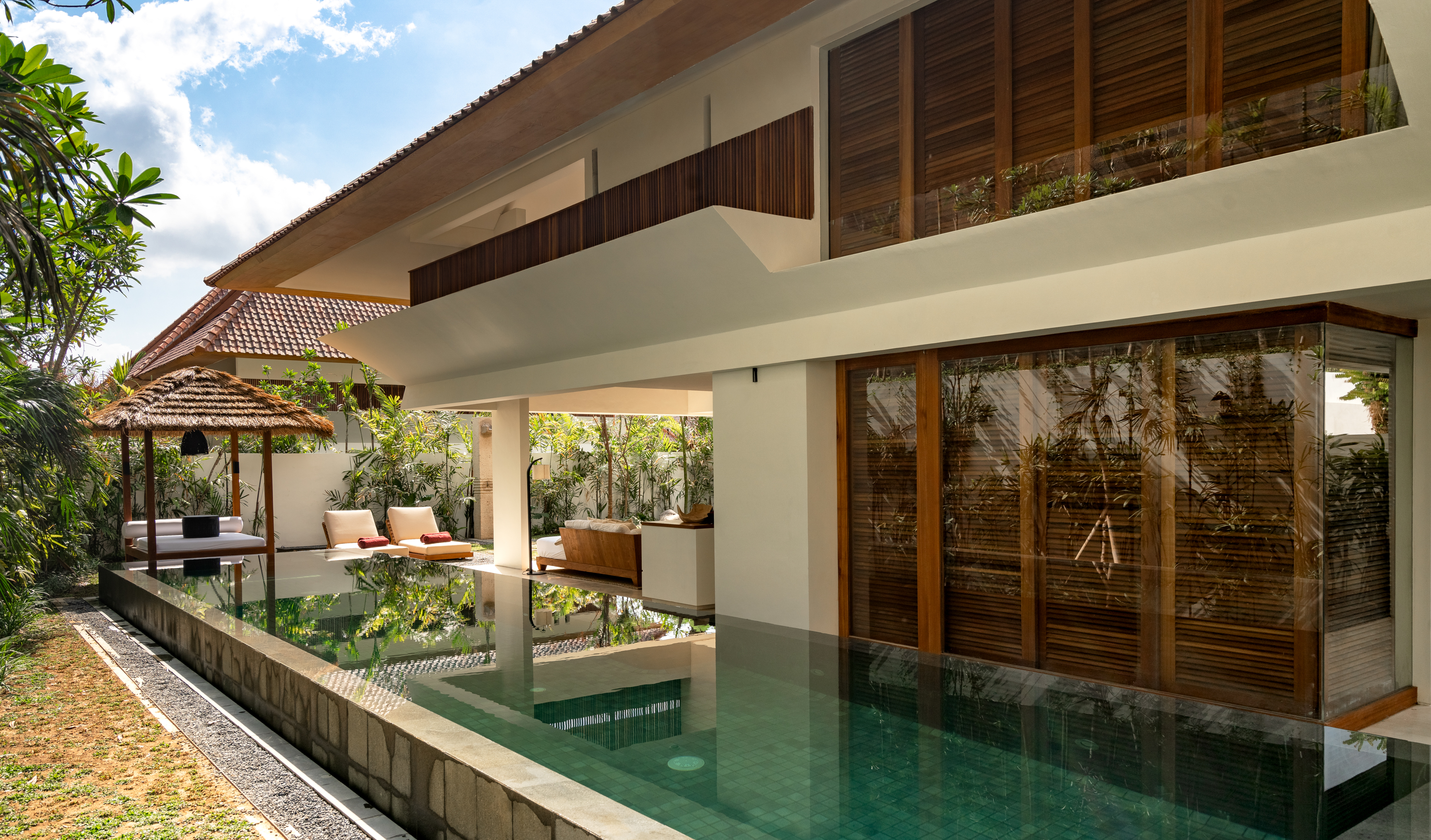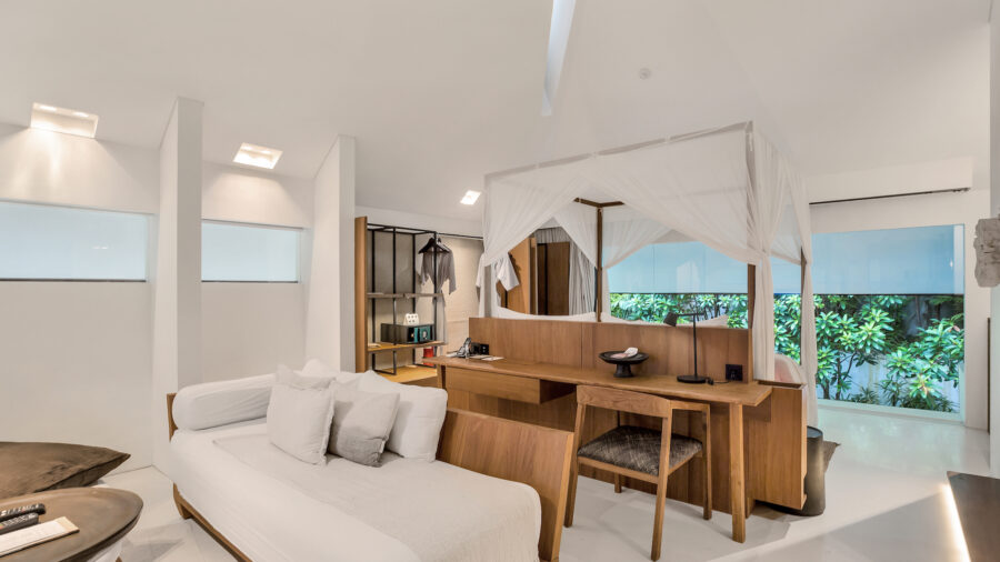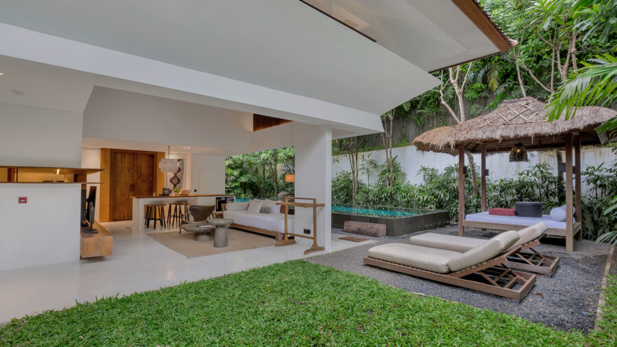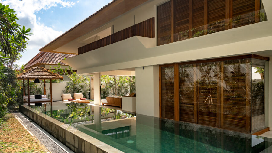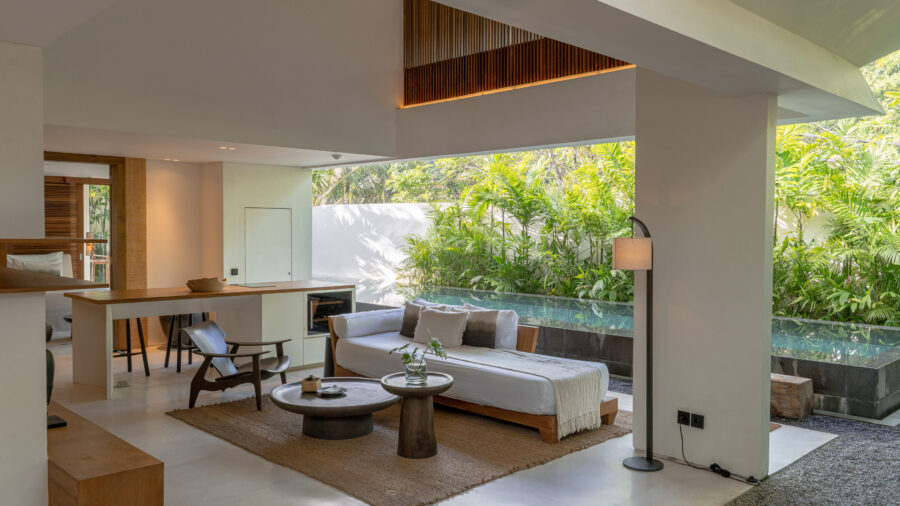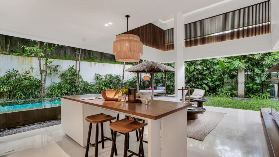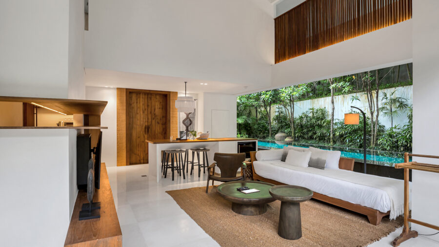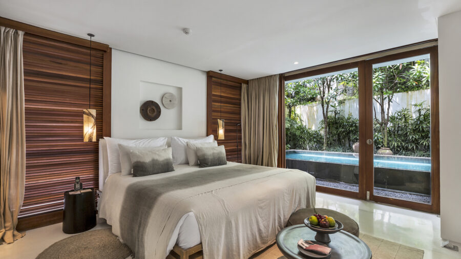 1階と2階それぞれにキングベッドの寝室を備えた2ベッドルームプールヴィラ。ベッドルームが離れて配置されているため、家族旅行や友人同士の滞在でもプライバシーを保ちながら過ごせます。広々としたオープンエアのリビングスペースと大きなプライベートプールを備え、ウブドの自然を感じながらゆったりとしたヴィラ滞在を満喫できます。