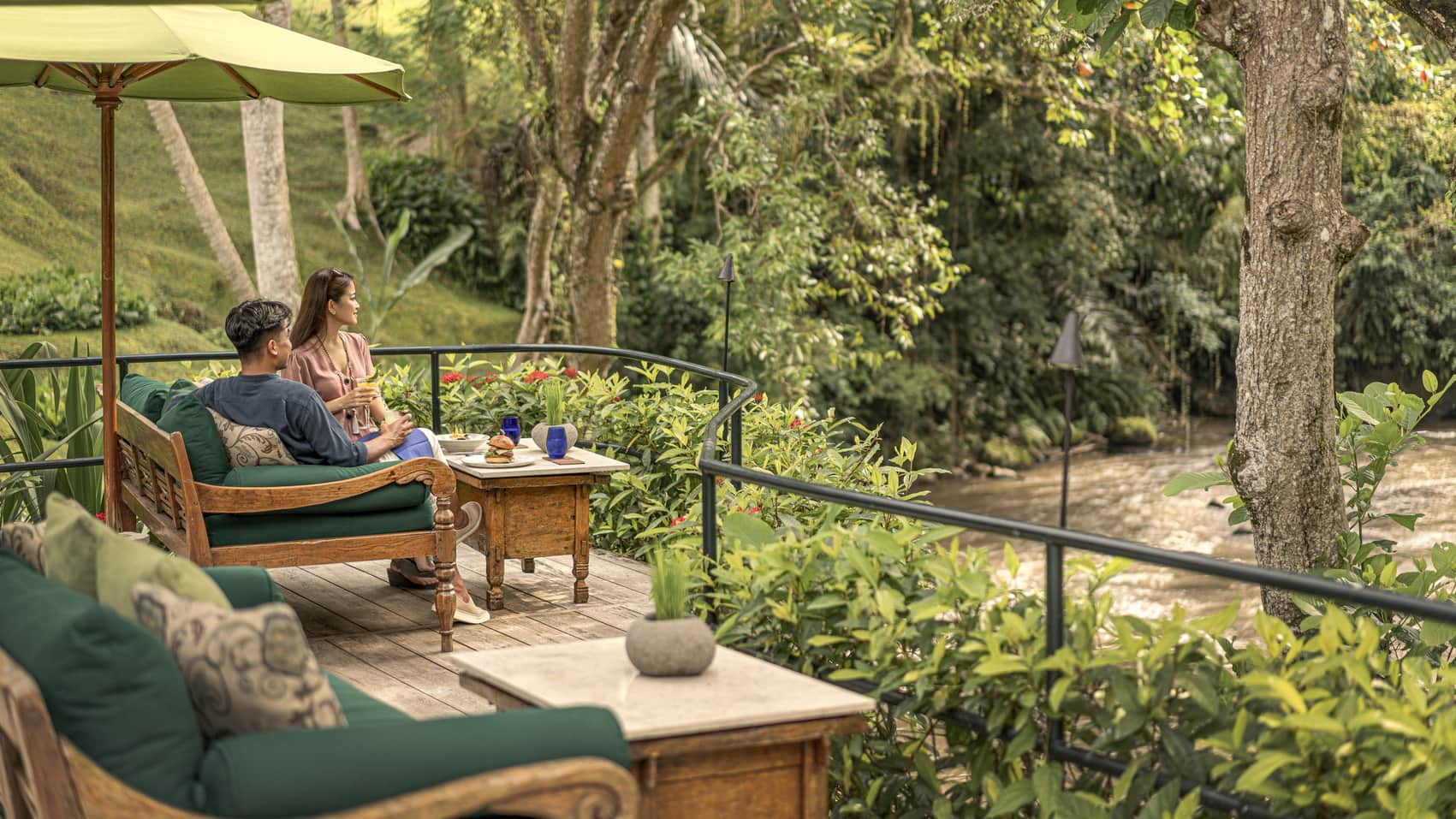 リバーサイドは、アユン川のほとりに設けられたカジュアルなオープンエアダイニングです。水の音と緑に包まれながら、軽食やインターナショナルメニュー、ドリンクを気軽に楽しめるのが魅力。プールサイドに隣接し、リゾートらしいリラックスした時間を過ごせます。