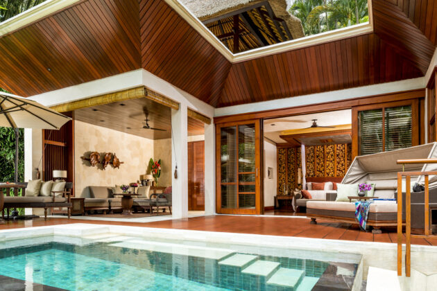 約427㎡の広々ヴィラは、プライベートプールや屋外リビングを備え、庭園に囲まれた贅沢な空間。各ベッドルームには専用テラスと屋外シャワー付きバスルームがあり、家族や友人との滞在にも最適です。