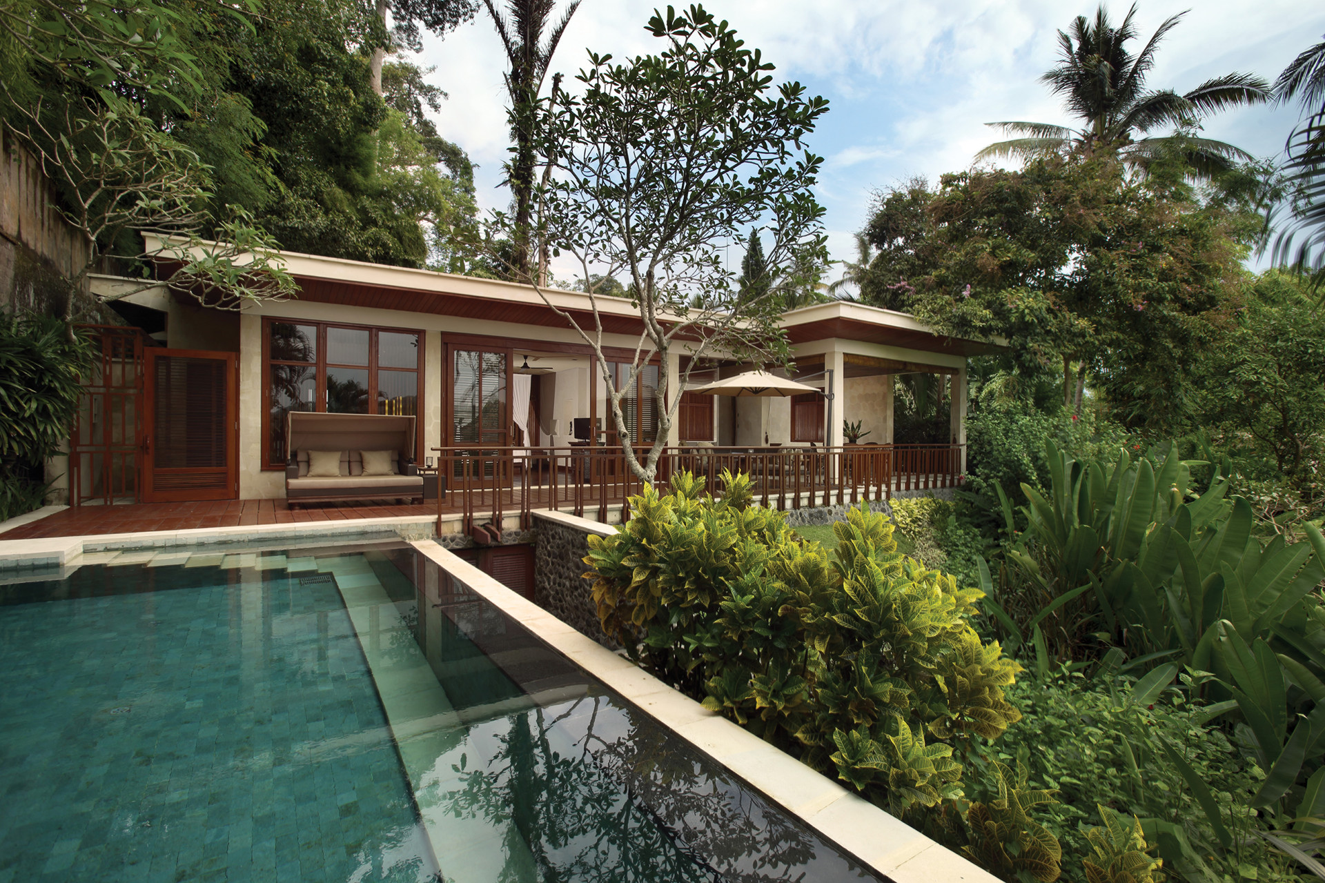 川沿いの特等席に建つヴィラで、プライベートプールや屋外リビングを満喫。ウブドらしい水辺の景色と静けさを、贅沢に楽しめます。