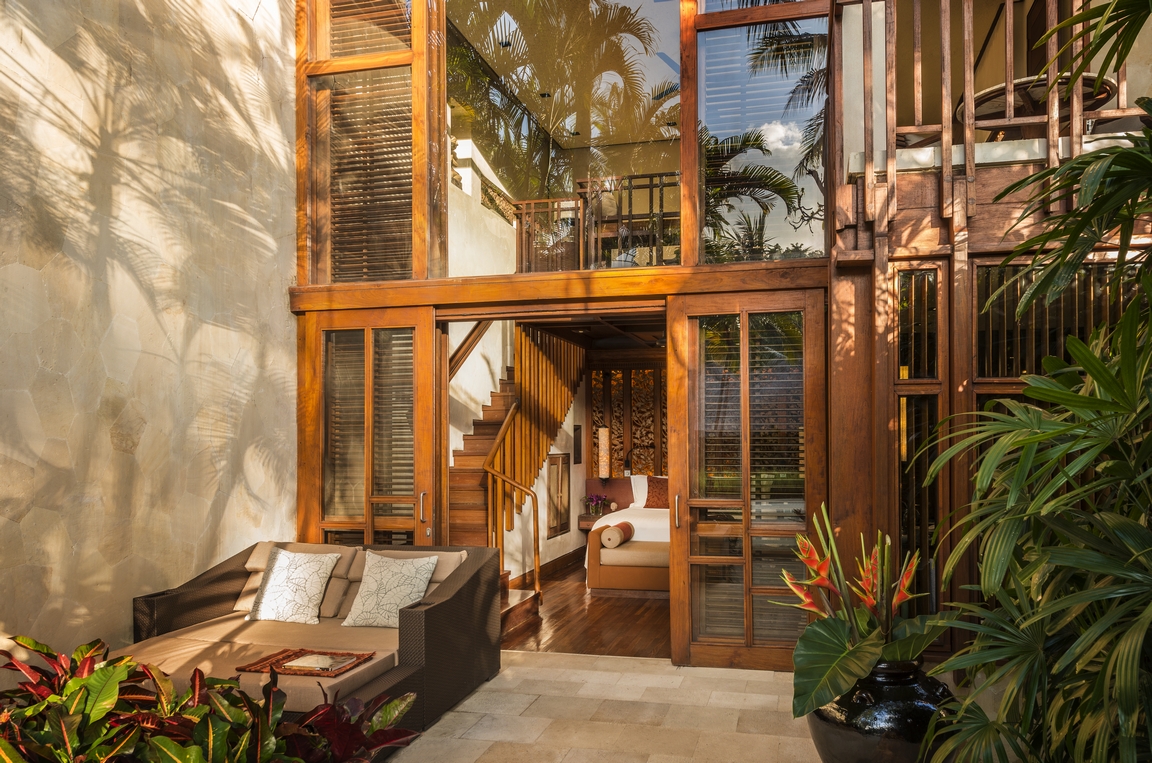 ウブドのカラーを取り入れたバスルームは、落ち着いたトーンの中でリラックスできる空間です
