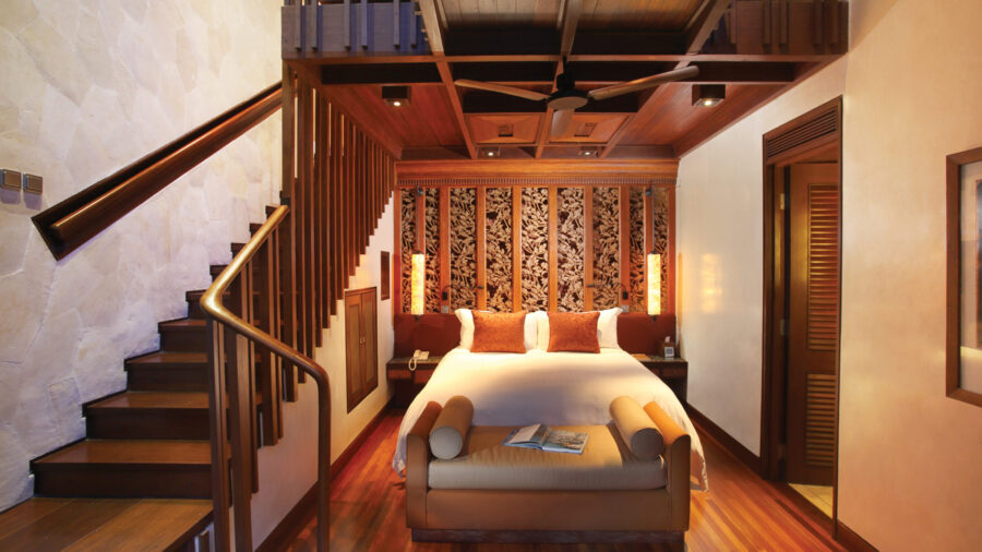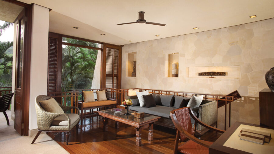 ベッドルームとバスルーム、テラスが揃った1階は、朝の光と渓谷の景色を独り占めできる空間です